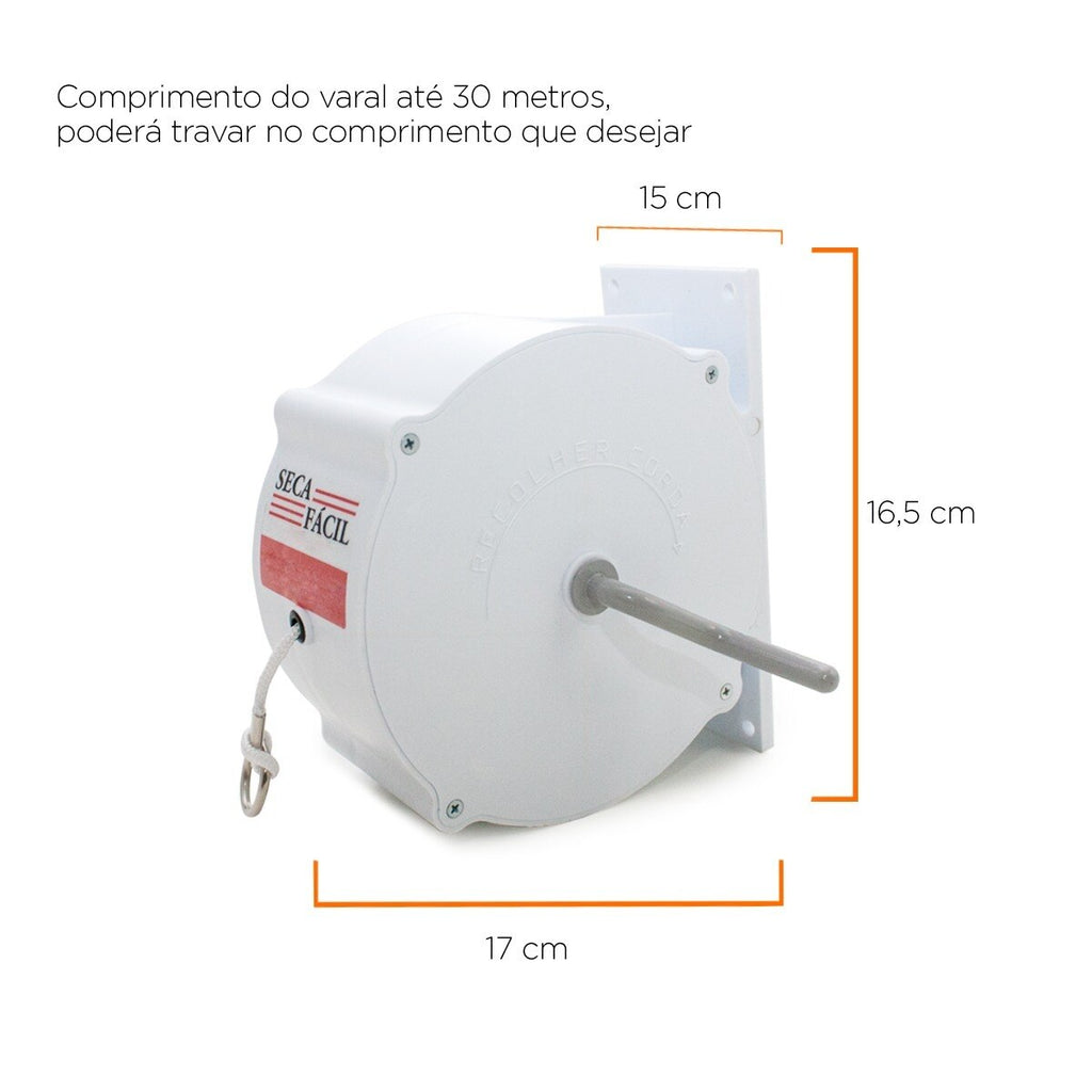 O Seca Fácil é um produto resistente e durável que permite a modelagem do seu varal em distintos ambientes, desde apartamentos compactos até grandes quintais. Conta com um sistema de recolhimento exclusivo que permite armazenar seus 30 metros de corda dentro do compartimento, mantendo o ambiente livre e visualmente confortável, diferente dos varais tradicionais.