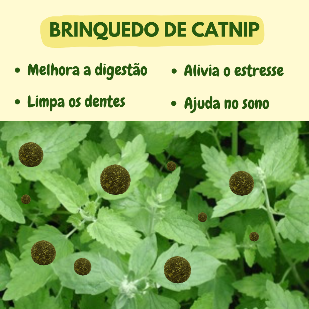 O melhor e mais divertido brinquedo que seu gato pode ter! O Catnip só traz benefícios para o animal sendo utilizado na forma e na quantidade correta. Os efeitos de euforia e agitação são causados por uma substância chamada Nepetalactone, que não prejudica o bichano.