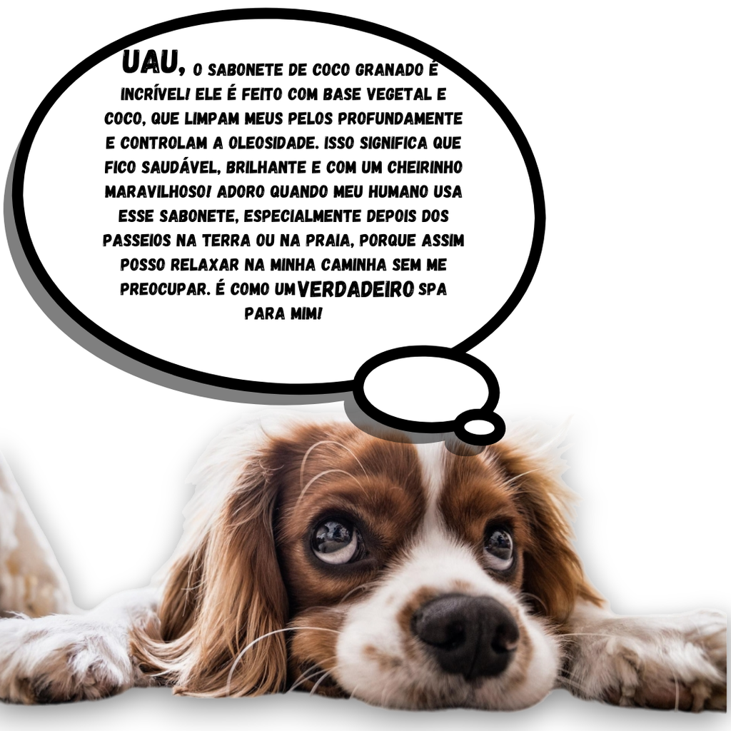 O Sabonete de Coco limpa profundamente e controla a oleosidade, mantendo a pelagem do animal saudável, brilhante e suavemente perfumada. Base vegetal. Ideal para Cães e Gatos.